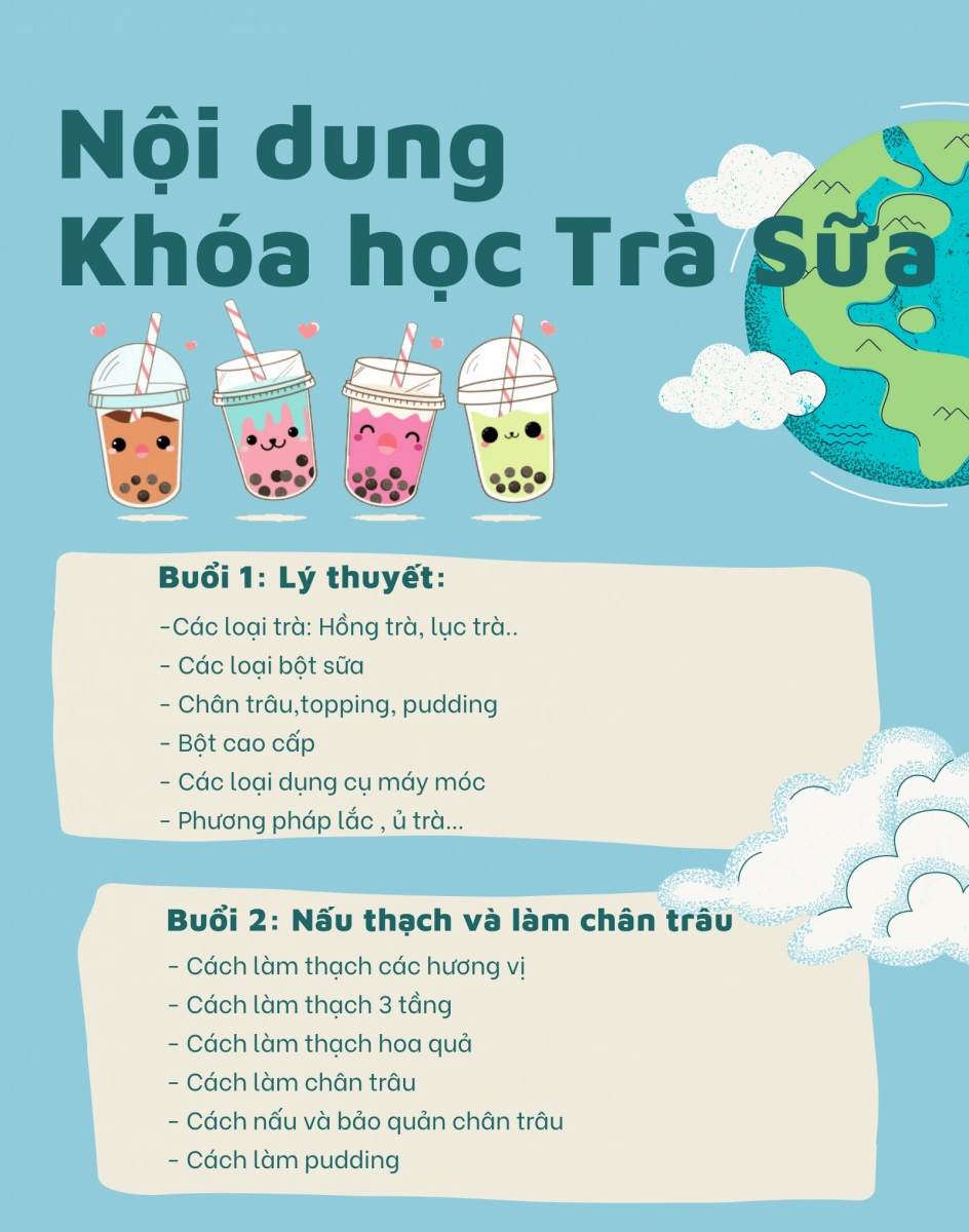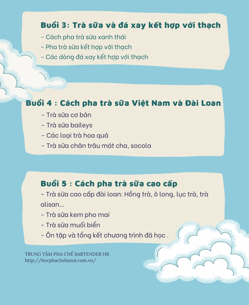 Bạn đang tìm kiếm khóa học trà sữa? Hãy tham gia ngay khóa học pha chế trà sữa tại Bartender HB, bạn sẽ sở hữ trọn vẹn bộ công thức và cách nấu trà sữa từ truyền thống đến hiện đại, cùng với cách làm toping các loại .